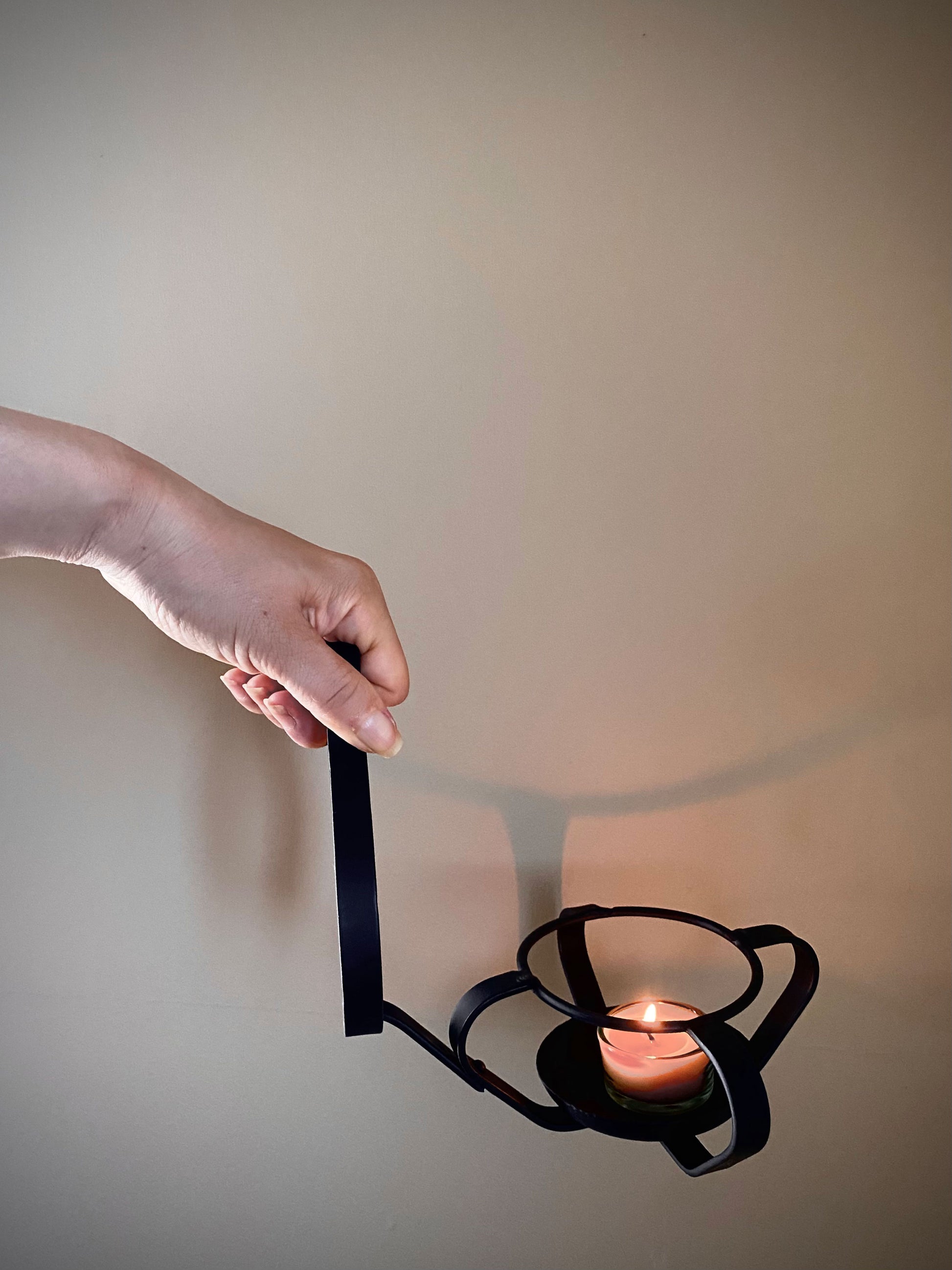 置き、掛け、持ち歩き、ティーウォーマーとして使用できる手燭台です。